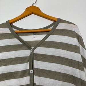 S.O. Kohl's women's plus size brown striped button up tie front cropped top tee