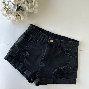 3/$20 Shein Black Distressed Cuffed Shorts