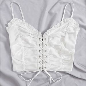 3/$20 Shein Lace Up Front Shirred Crop Cami Top Y2K inspired