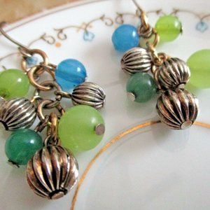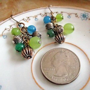 3/$20 Sky Blue & Green Glass Bead Dangle Earrings