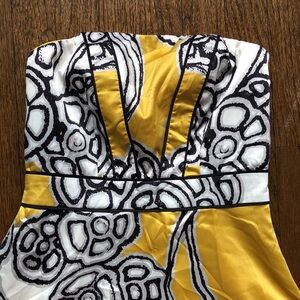 3/$20 The Limited Abstract Yellow Bodice Satiny Shiny Strapless Cocktail Dress