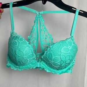 Victoria’s Secret PINK Teal Blue Sexy Lace Date Racerback Padded Push Up Bra