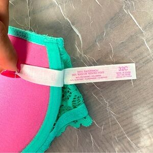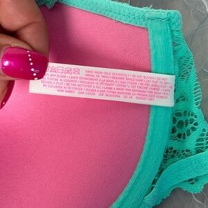 3/$20💥 Victoria’s Secret PINK Bra Teal Blue Lace Date Racerback Padded Push Up