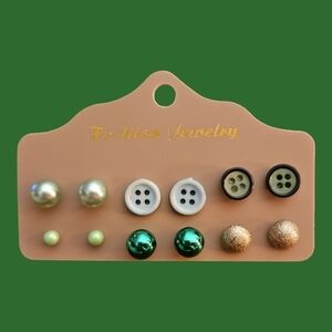3/$20 Vintage Green Ball Button Post Stud Earrings
