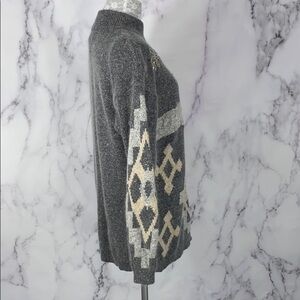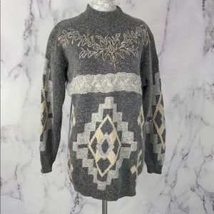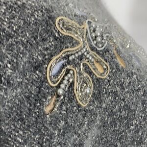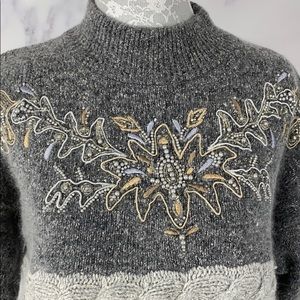 Vintage Santoria Gray Silk Angora Rabbit Hair Lambswool Beaded Sweater Mock Neck Aztec Beautiful Bead Work Removable Shoulder Pads