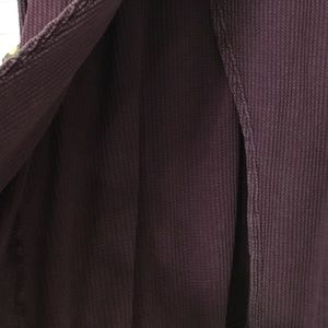 This Wonderly pullover has a vintage look. It has a waffle knit pattern for the material in a reddish plum color. More like a garnet color. The collar is turtleneck and the back is partially open. See pictures.