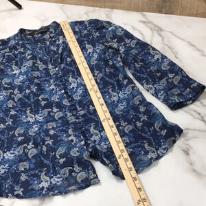 Zara Woman Blue Floral Paisley Button Front Shirt Womens Small 3/4 Sleeve. No material tag. Semi-sheer. Pre-owned Condition- no flaws, no rips, stains, or holes.