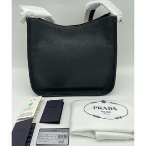 $3200 PRADA BLACK LEATHER HOBO SHOULDER BAG PURSE AUTH! Used once