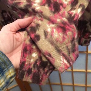 Tan, brown and pink mostly-a little white here and there. Looks like a watercolor painting-beautiful!!!!
