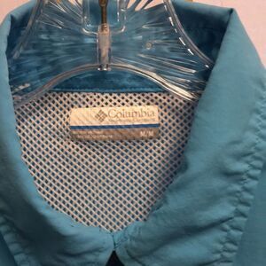 Beautiful sky blue! Netting on back. Velcro in pockets.