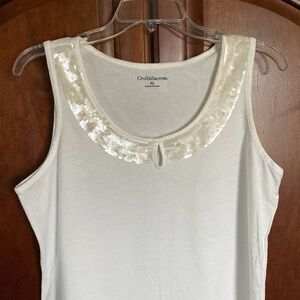 🔥3/$20🔥 Croft & Barrow white tank top with sequins size PL