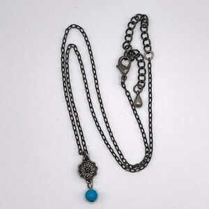 *3/$20* Dainty silver tone necklace with turquoise colored bead