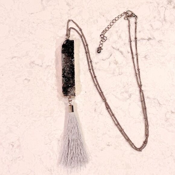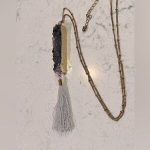 *3/$20* Gray crystal and tassel pendant gold tone long necklace