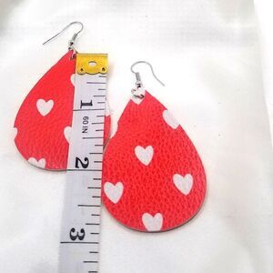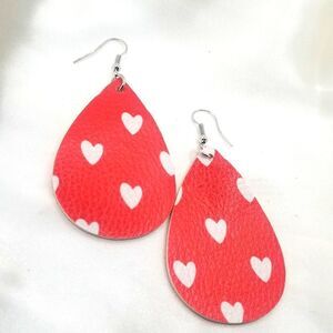 3/20❤Light weight fish Hook faux leather heart Dangle earrings.