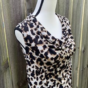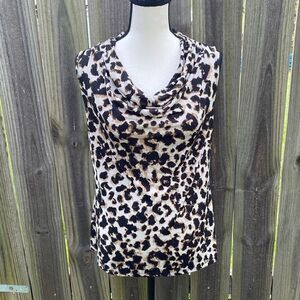 Merona sleeveless cowl neck blouse. Cream background with black and tan leopard print. In great condition!