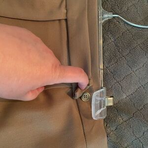 Cute tan skirt, button and zip in back, as well as pocket in back. So simple, but can liven up with some color!