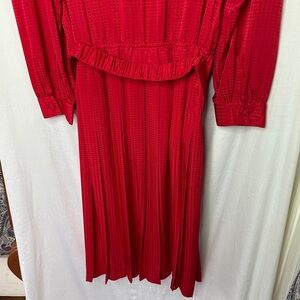 Vintage Appleseed’s Petite Red Front Button Down Long Sleeve Belted Waist Flowy A-Line Retro Style Midi Dress