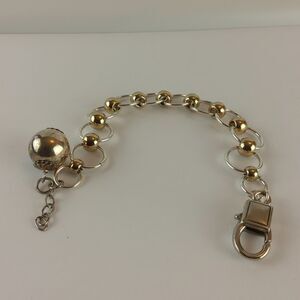 Fashion jewelry silvertone & goldtone beaded circular chain link bracelet. Bracelet has some mild tarnishing on large ball, please refer to pictures.