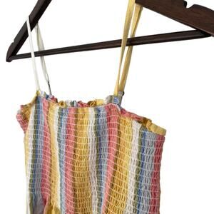Features: Adjustable straps, stretchy, ruffle bottom, Smocked