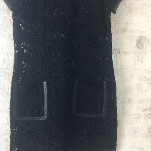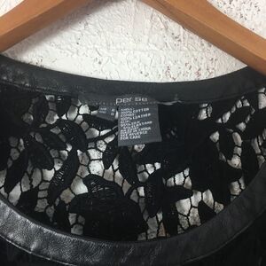 #321 PER SE BLACK LACE LEATHER TRIMMED MINI DRESS