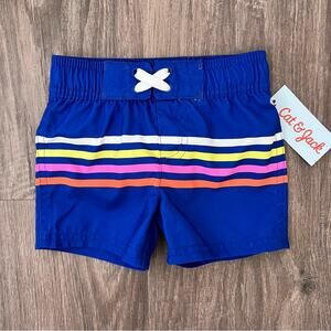 Cat & Jack Baby Boys Swim Shorts 12M Blue Stripe Board Trunks UPF 50+ Summer
