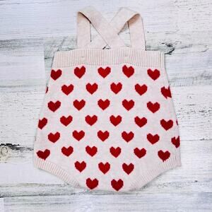 Cat & Jack Baby Girls Romper 6-9M Red Hearts Knit One Piece Sleeveless Valentine