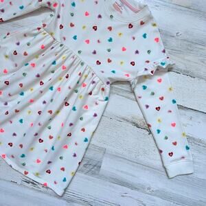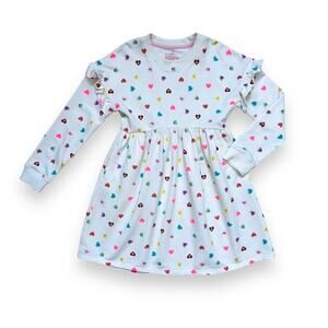 Cat & Jack Fleece Dress Girls 8 White Long Sleeve Multicolor Valentine Hearts