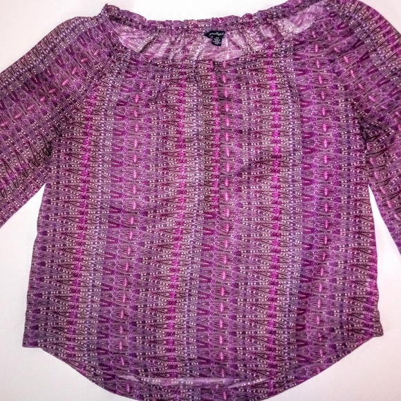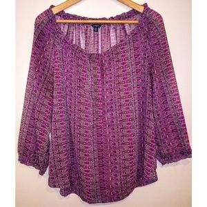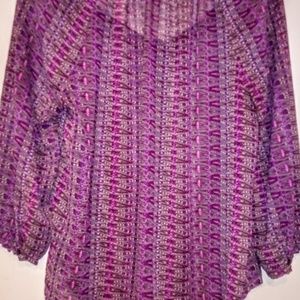 3/$24! AEO Purple Boho Sheer Chiffon Peasant Top