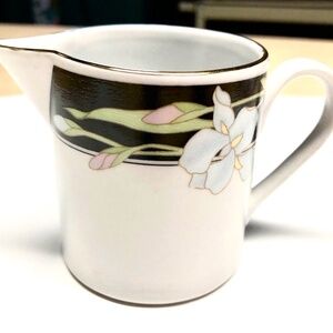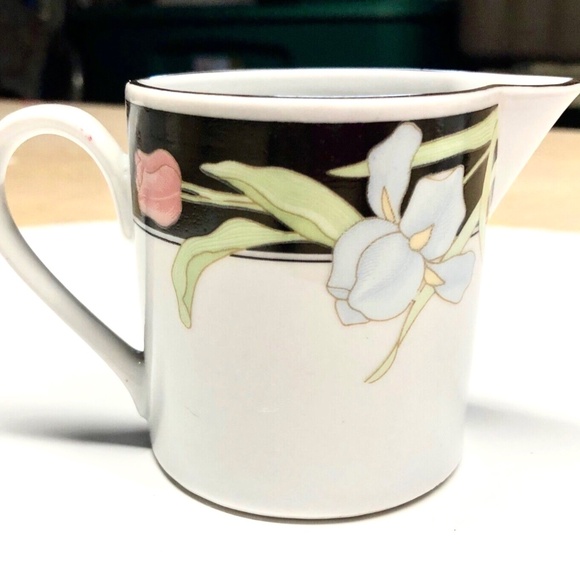 3/$24 FAIRFIELD Classic VANESSA White/Black Trim Tulips Iris Fine China Creamer