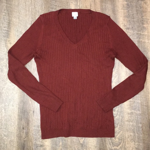 Burnt maroon colored sweater Ribbed material V neck Soft and comfy Worn 2-3 times! EUC