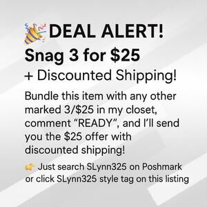 Bundle this item with any other marked 3/$25 in my closet, comment "READY", and I’ll send you the $25 offer with discounted shipping!