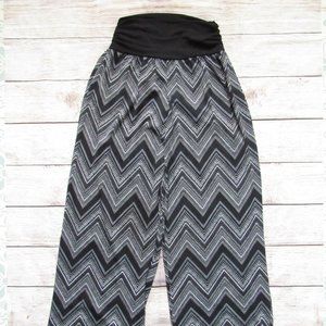 Apt.9 Loose Leg Pants in Very Good Condition. Lightweight. Flattering high waist band. Black/White/Blue. Size Medium. Inseam 27"
