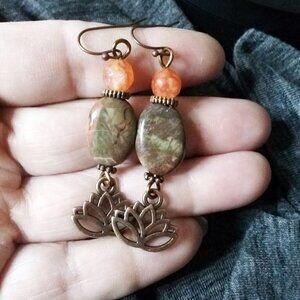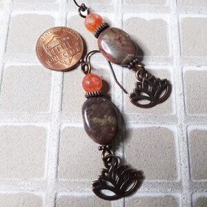 ๐๐๐ 3/$25!!! Brown Jasper + Orange Agate + Copper Lotus Earrings