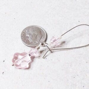 These lightweight and flashy pale pink dangle earrings are perfect for that girly cat and/or dog lover in your family! Really cute pink pressed glass paw prints + pink faceted bicone crystal beads embellish both the actual dangles as well as the extra long, stainless steel kidney earwires. Limited numbers available - come and get them while they last!