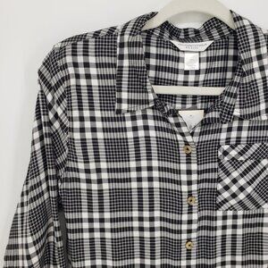 3/$25 Christopher & Banks Plaid Button Down Shirt Top SP Long Sleeve White Black