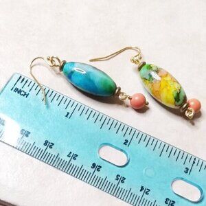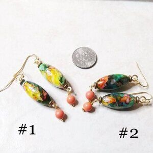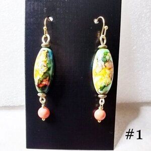 I have 2 pairs in this fresh tropical color design available for you to choose - select your favorite pair in the drop-down menu by number. I try to select beads that somewhat match in colors - at least on one side = but rotate the beads on the headpin and you get a totally different look!
