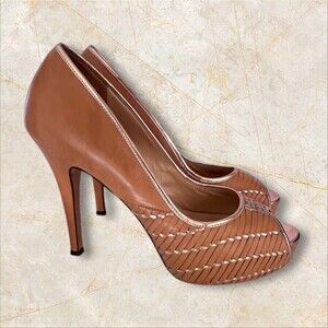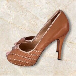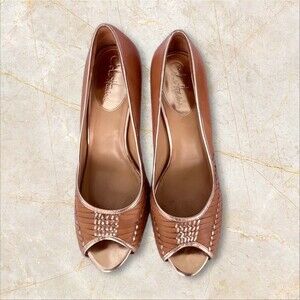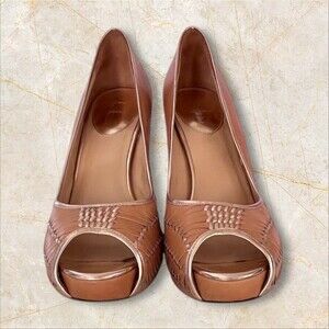 $325 Cole Haan Eve Air Hi OT peep toe Pumps beige/penny mirror Size 10B Shoes