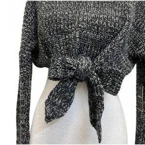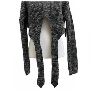 NWT Forever 21 Cropped Knit Sweater Top in Charcoal dark gray, white and metallic, size medium.