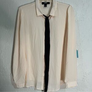 Forever 21 Light Pink Button Down with Black Bow/Tie Size 1X