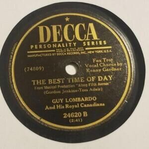 Guy Lombardo 78 RPM record, The Best Time of Day vinyl, If I Could Be With You song, Decca 24620, vintage big band record, nostalgic vinyl, collectible 78 RPM, tested Decca record, classic Guy Lombardo, Royal Canadians music