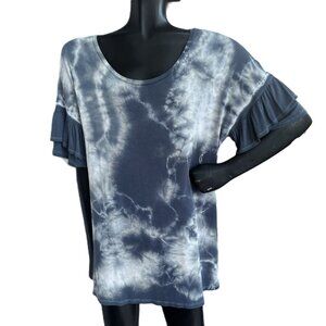 3/$25 ๐ Hand Tie-Dyed Ruffle Sleeve Tee | Dark Denim Turquoise | Rayon