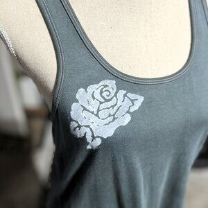 3/$25 🆕 Hand-Painted White Rose Racerback Tank | Olive Green | Made in USA