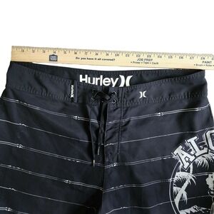 Hurley black and white boardshorts. Size tg was removed. Waist measures approx 36 inches.