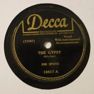 Ink Spots 78 RPM record, The Gypsy vinyl, Everyone Is Saying Hello Again song, Decca 18817, vintage vocal group record, classic Ink Spots music, collectible 78 RPM, tested vintage vinyl, nostalgic jazz-pop record, old Decca records
