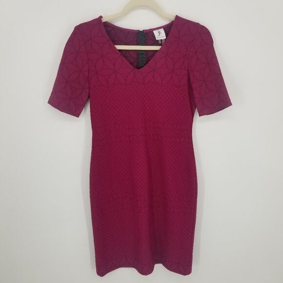 3/$25 Julia Jordan Textured Floral Bodycon Dress 4 Fitted Short Sleeve Berry Red