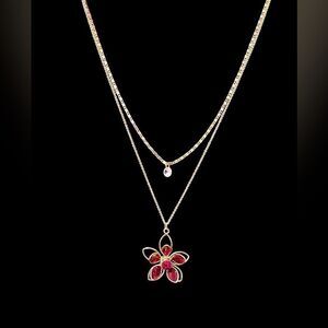 ⭐️3/$25⭐️ LC Lauren Conrad Red Flower Cubic Zirconia Gold Tone Long Necklace NWT