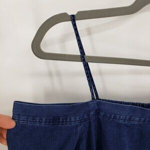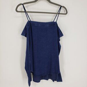 3/$25 LOFT Strappy Chambray Off the Cold Shoulder Top XXS Long Sleeve Denim Blue