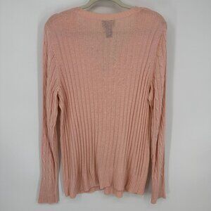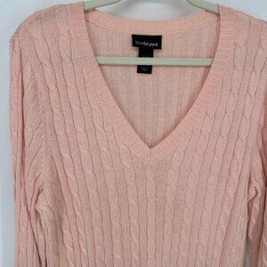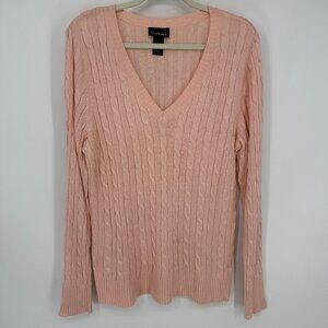 3/$25 Lane Bryant Cable Knit Sweater 14 / 16 Pullover V Neck Light Pink Angora