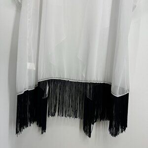 3/$25 LulaRoe Sheer Fringe Monroe Kimono Cardigan Top L White Black Boho NWT