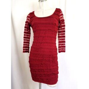 3/$25 Max Studio S Red Rust Dress Sheer Sleeves
